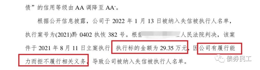 此前根據評級公司于2022年1月20日披露的公告,某城投公司因為執行標的金額為29.35萬元的案件有履行能力而拒不履行相關義務,于2022年1月13日被納入失信被執行人名單。債券民工本來以為這已經是最低的金額了,沒想到這個最低金額可以一直刷新。