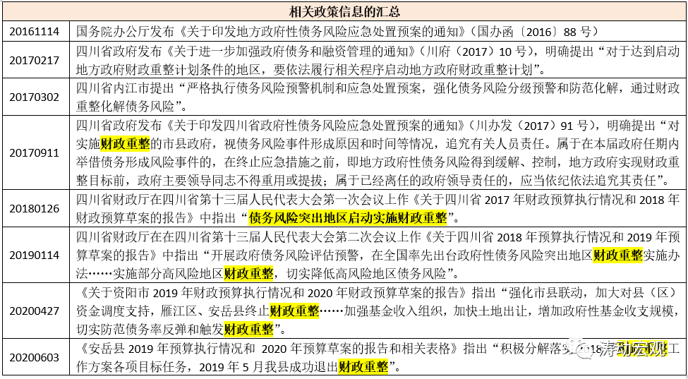 二、四川資陽市的雁江區和安岳縣已于2018年率先實施了財政重整計劃