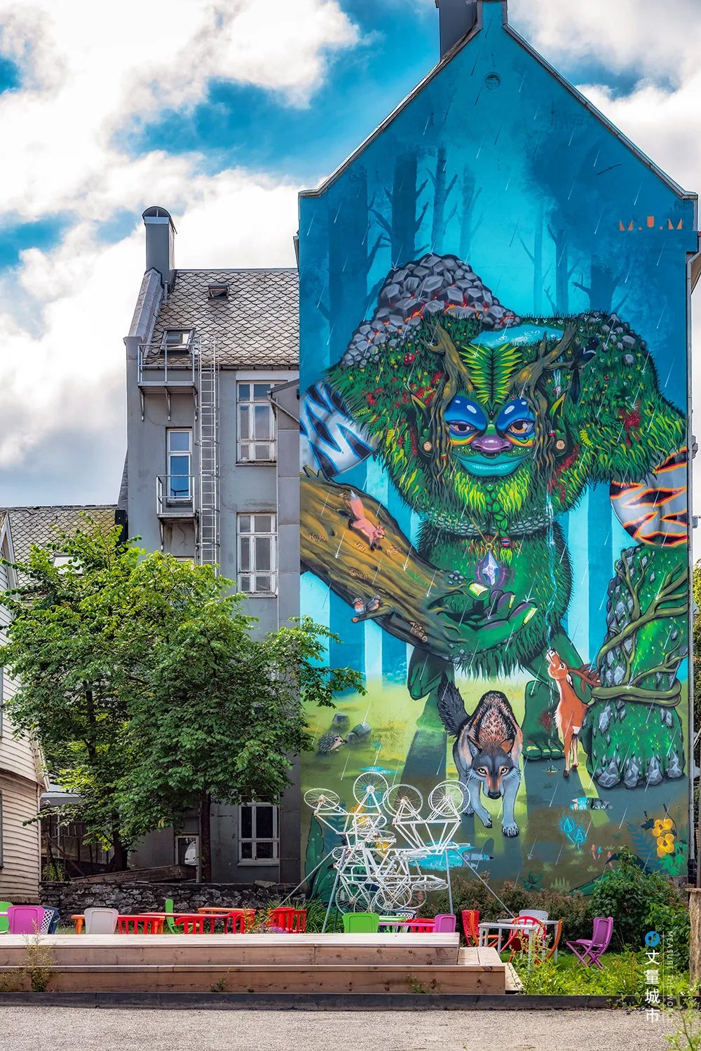 ▼ 挪威卑爾根實(shí)施了街頭藝術(shù)行動(dòng)計(jì)劃,邀請(qǐng)大批涂鴉藝術(shù)家在老建筑上進(jìn)行藝術(shù)創(chuàng)作,促進(jìn)老城復(fù)興