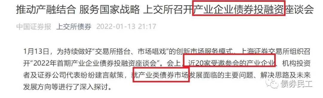 2022年1月13日,上海證券交易所專門召開了產業企業債券融資座談會,聚焦產業債發展難點,暢通企業融資渠道。上海證券交易所通過座談會這種模式,鼓勵產業企業通過發行債券的方式進行融資。