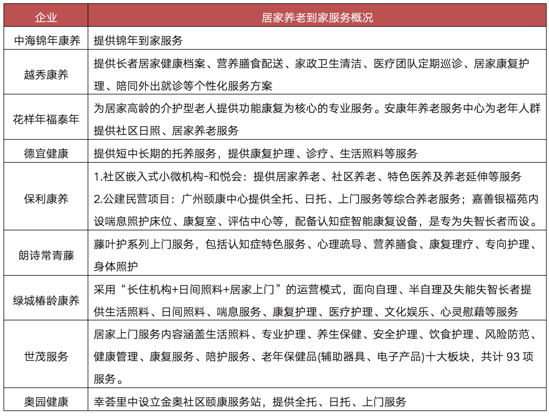 據克而瑞物管盤點,目前提供上門服務的企業有9家,這部分業務的更契合社區居家養老,足不出戶便可以享受到全方位的生活和健康照料。