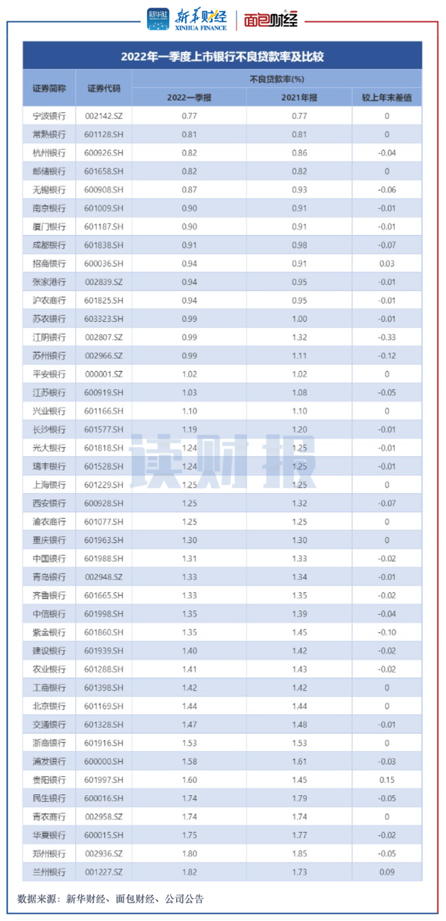 圖3:2022年一季度上市銀行不良貸款率及比較