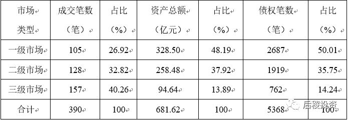 從上表可知,一級市場的成交的資產總額將近占到總成交額的一半。