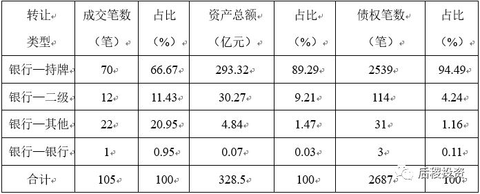 本轉讓類型中,持牌AMC從銀行端的受讓情況如下: