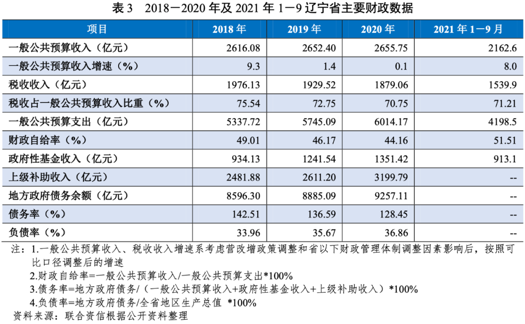 遼寧省地處中國東北邊境,是東北地區唯一既沿海又沿邊的省份。遼寧省是中國重要的老工業基地之一,石化、冶金和機械產業為遼寧省支柱產業;2020年遼寧省經濟總量仍位于全國中游水平,人均GDP處于全國中下游水平。2020年,遼寧省一般公共預算收入全國排名第13位,一般公共預算收入穩定性較強,但是財政自給率一般。2018-2020年,遼寧省政府性基金收入快速增長,上級補助收入對地方綜合財力貢獻程度較大。2020年,遼寧省政府負債率為36.86%,政府債務率為128.45%,遼寧省政府負債水平較高,債務負擔較重。2021年前三季度,遼寧省經濟增速及固定資產投資同比增速均大幅提高;遼寧省一般公共預算收入和稅收收入同比增速亦均大幅提高。