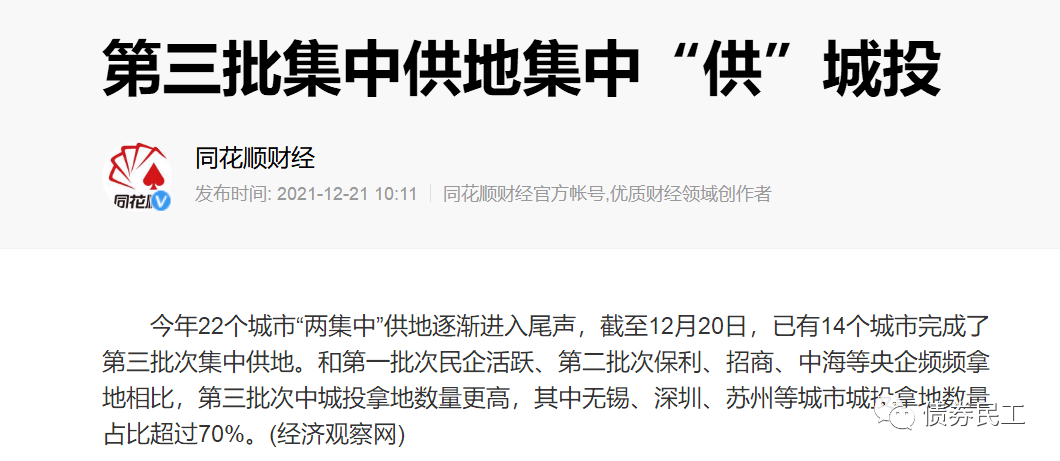 2021年對于房地產(chǎn)公司來說,是一個轉(zhuǎn)折之年,面臨的挑戰(zhàn)非常之大,部分房地產(chǎn)公司甚至已經(jīng)發(fā)生了違約。但是城投公司開始布局優(yōu)質(zhì)房地產(chǎn)業(yè)務(wù)了(詳見部分城投公司已經(jīng)開始布局優(yōu)質(zhì)房地產(chǎn)業(yè)務(wù)!)。從近期的公開數(shù)據(jù)來看,城投公司布局優(yōu)質(zhì)房地產(chǎn)業(yè)務(wù)的速度在加快,在第三批集中供地中,部分城市的城投公司拿地數(shù)量占比超過了70%。