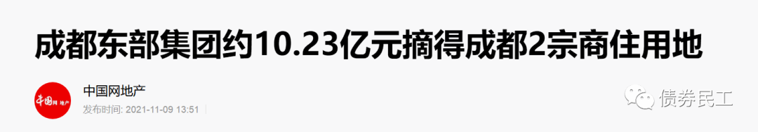 2021年11月9日,成都東部集團有限公司(實際控制人為成都東部新區(qū)黨工委管委會財政金融局)以10.23億元的價格摘得成都東部新區(qū)空港新城總出讓面積為181畝的土地,土地性質(zhì)為住宅用地。