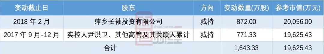另外,根據(jù)上市公司于2018年1月1日披露的股東減持計(jì)劃,萍鄉(xiāng)長袖投資有限公司計(jì)劃自公告披露之日起15個(gè)交易日后不超過6個(gè)月內(nèi)減持其持有的公司股份2484.18萬股,占公司總股本的5.97%。公開信息顯示:該計(jì)劃披露之后到目前,其減持股份數(shù)量約872萬股,減持計(jì)劃尚未實(shí)施完畢。