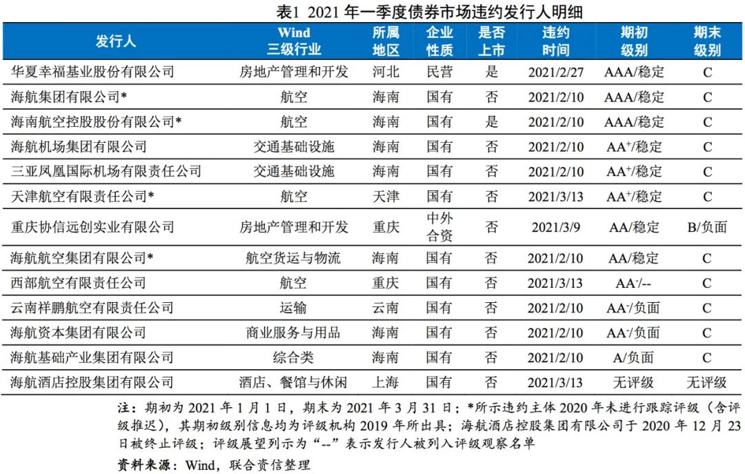 2021年一季度中國債券市場評級表現和評級質量研究報告——海航系企業破產重整,違約風險定向集中釋放