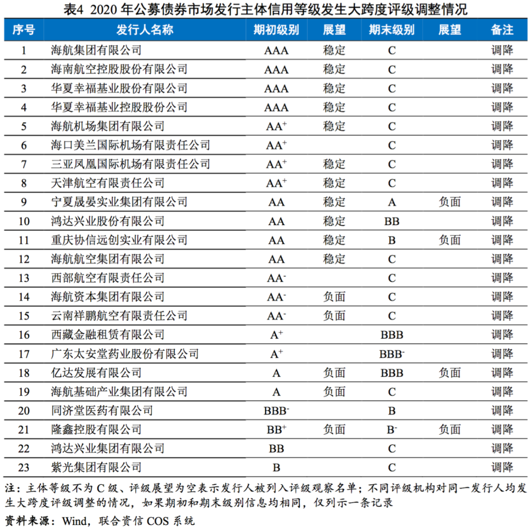 2. 信用等級遷移數量相對較少,主要級別均呈現向下遷移趨勢
