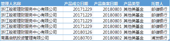 8月初備案通過的其他類基金,5只均為浙江當(dāng)?shù)貒蟀闳衾碡?cái)發(fā)起的,專注于不良資產(chǎn)收購方向的產(chǎn)品。