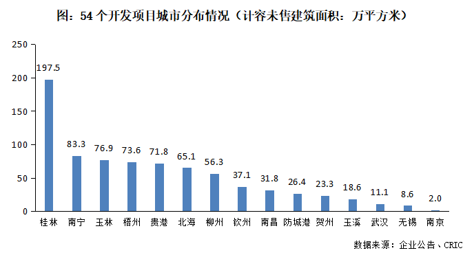 從公告披露信息可知,此次收購(gòu)涉及目標(biāo)項(xiàng)目共57個(gè),包含54個(gè)開發(fā)項(xiàng)目及3個(gè)代建項(xiàng)目,總計(jì)容未售建筑面積為825.17萬(wàn)平方米。其中,54個(gè)開發(fā)項(xiàng)目計(jì)容共計(jì)未售建筑面積783.33萬(wàn)平方米,90.8%位于廣西各城市核心區(qū)域,主要分布在桂林、南寧、玉林等城市,且以住宅為主,流動(dòng)性強(qiáng)。這些優(yōu)質(zhì)資產(chǎn)的注入,大大增強(qiáng)了融創(chuàng)在廣西的競(jìng)爭(zhēng)力和可持續(xù)發(fā)展能力。