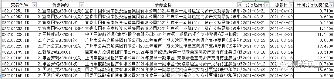 6、通過資產支持票據發行的碳中和債共12只,債券發行規模為96.80億元,發行人包括融資租賃公司、央企、城投公司等各種類型。