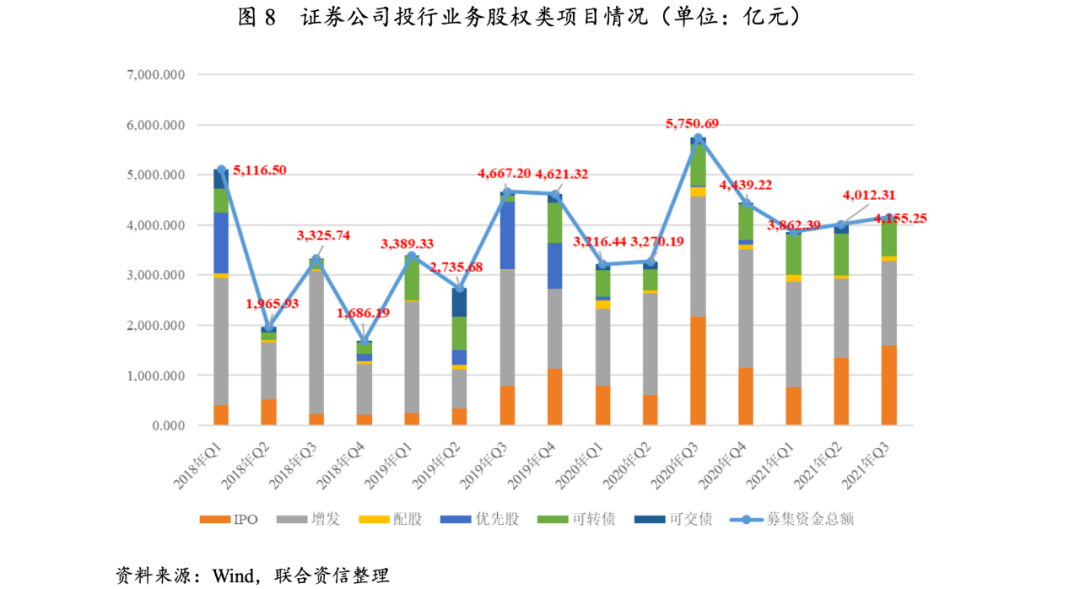 2021年第三季度,紅塔證券配股計劃進入實施階段,募集資金79.41億元;東興證券和國聯(lián)證券的增發(fā)方案已經(jīng)進入實施階段,募集資金分別為44.93億元和50.90億元,預(yù)計隨著證券公司各項業(yè)務(wù)發(fā)展,資本補充趨勢將延續(xù)。