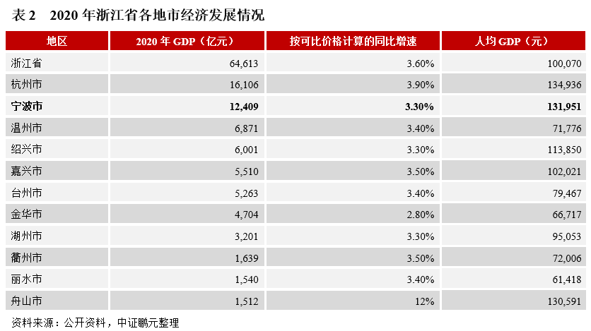 (1)區(qū)域經(jīng)濟(jì):近三年寧波經(jīng)濟(jì)呈現(xiàn)出較強(qiáng)韌性,實(shí)現(xiàn)了穩(wěn)健增長(zhǎng)。按常住人口計(jì)算,2020年寧波人均GDP為131,951元,為全國(guó)人均GDP的187.50%。