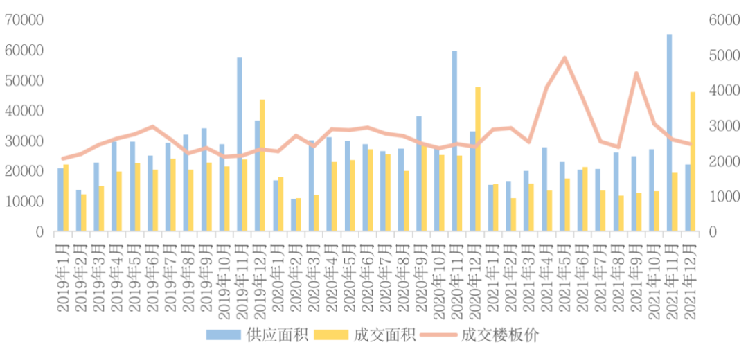 價格方面。受城市成交結(jié)構(gòu)變動影響,12月平均地價并未抬升,反而較11月下滑了5%至2472元/平方米。各能級城市中,除一線城市成交地價環(huán)比上漲外,其余能級城市的成交地價均較11月有所下滑,其中三四線城市降幅最大,平均地價環(huán)比下降了7%至1654元/平方米。但對比2020年來看,各能級城市的地價均有所抬升,尤其是二線城市,2021年平均地價達5430元/平方米,同比上漲了28%。