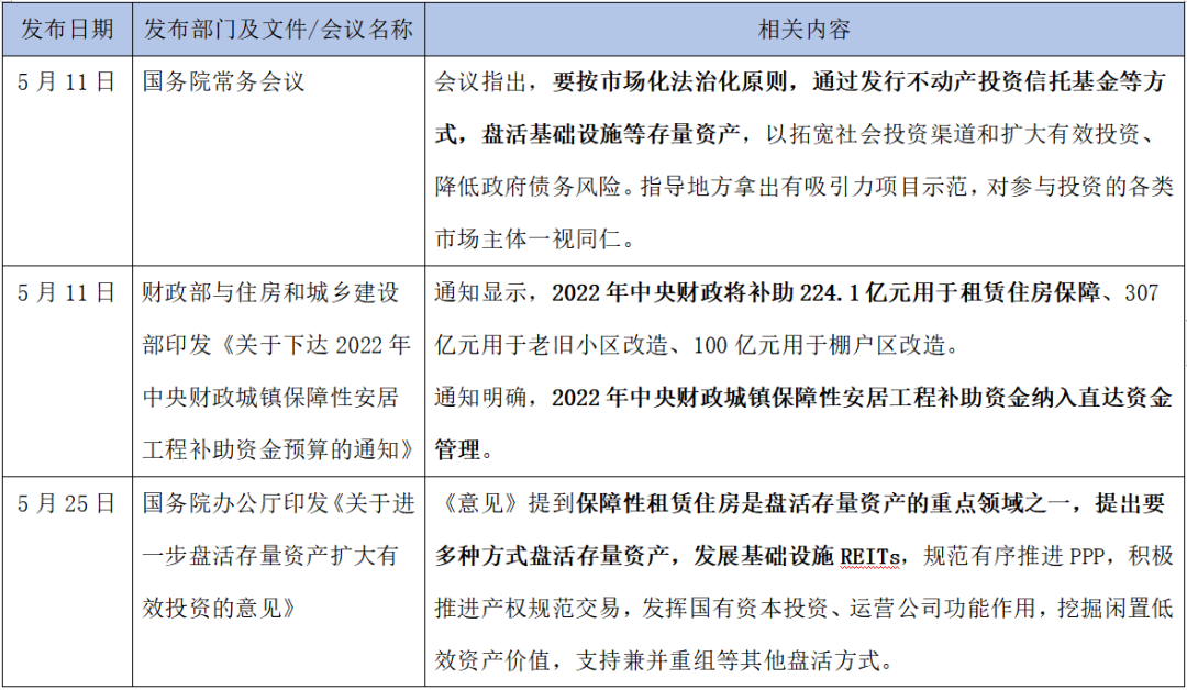 表1:2022年5月國(guó)家層面租賃住房相關(guān)重點(diǎn)政策匯總