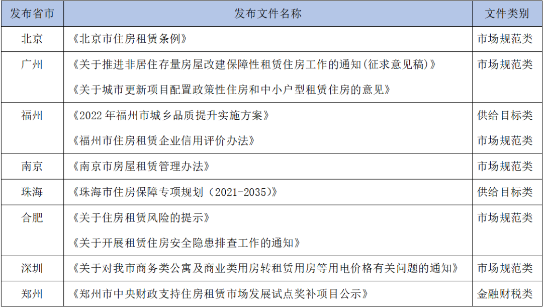 表2:2022年5月各地租賃住房相關(guān)重點(diǎn)政策匯總