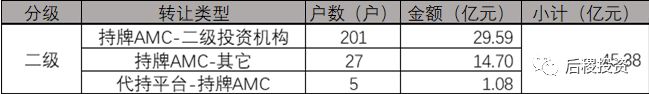 持牌AMC出包金額超過40億,包括了持牌AMC-持牌AMC、持牌AMC-其它和二級(jí)投資機(jī)構(gòu)等多種轉(zhuǎn)讓模式。