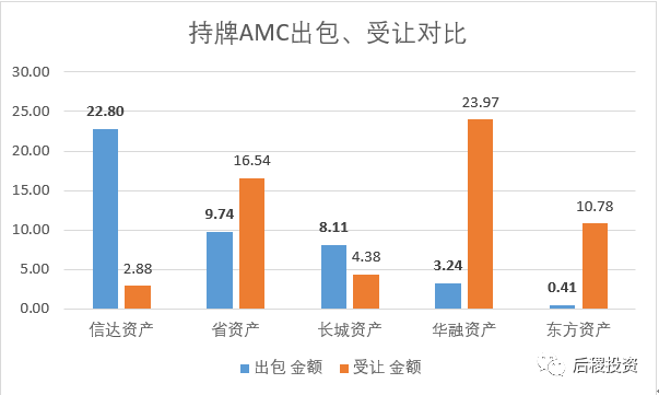 華融和信達(dá)在收包和出讓業(yè)務(wù)上分別領(lǐng)先。