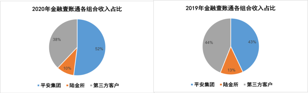 透視壹賬通財報,金融壹賬通對平安集團的依賴與日俱增。2020年,平安集團為金融壹賬通貢獻收入17.27億元,占整體收入的比例從2019年的42.7%上升到52.1%。