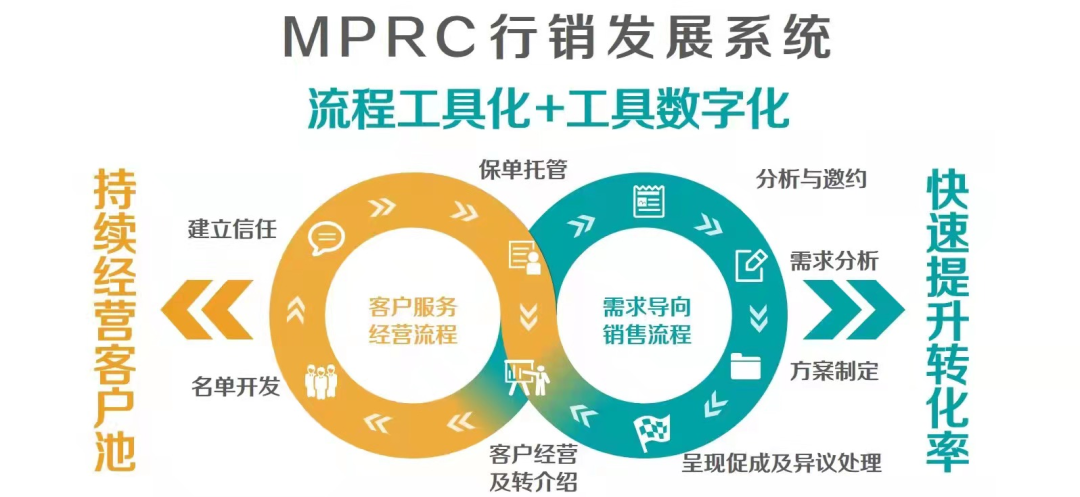 i云保業(yè)務(wù)培訓(xùn)發(fā)展部負(fù)責(zé)人胡艷波表示,MPRC行銷發(fā)展系統(tǒng)強調(diào)以服務(wù)貫穿整個客戶開發(fā)和經(jīng)營,課程創(chuàng)造性的提出了雙循環(huán)的理念,以客戶保單托管為核心,鏈接客戶經(jīng)營和客戶轉(zhuǎn)化兩大循環(huán),同時通過各銷售環(huán)節(jié)的工具化、流程化,讓代理人能更快適應(yīng)和掌握這套行銷發(fā)展理念和技能。