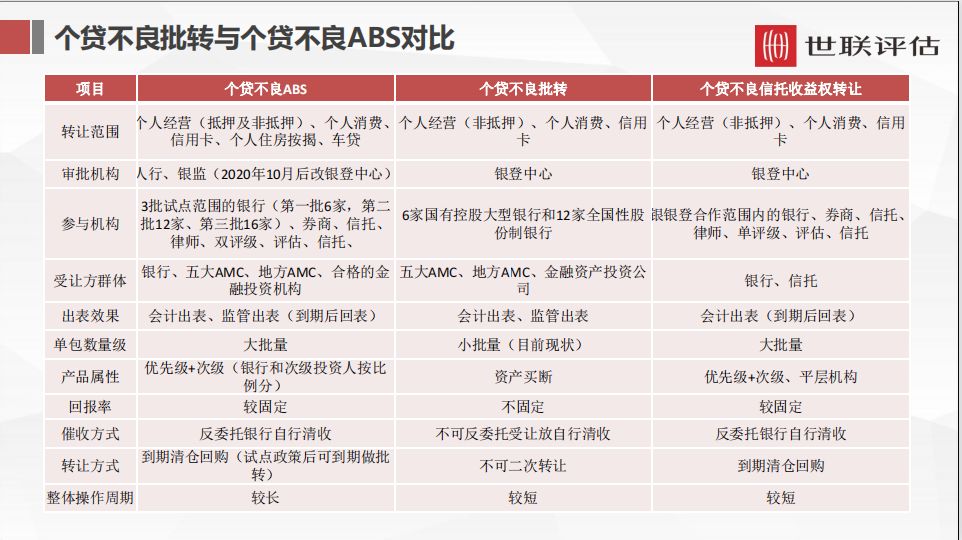個貸不良批轉與個貸不良ABS對比