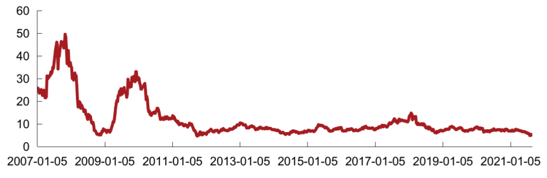 注:1)恒生中國內地地產指數的推出主要是為了反映前10只市值最大、流通性最高,在香港上市但主要營業(yè)收入來自中國內地的房地產股票表現。當前成分股共10只,分別為:中國金茂、中國海外發(fā)展、世茂集團、龍湖集團、華潤置地、龍光集團、碧桂園、中國恒大、碧桂園服務、融創(chuàng)中國