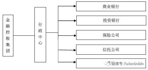 金融控股集團,又稱為純粹控股集團,是一種以無主業集團公司為母公司的金融控股集團。該模式在相關的金融機構之上建立金融控股集團,并在各金融子公司和控股集團之間設立一個行政中心,各子公司專門從事具體的金融業務,而控股集團則從中獲取股權收益,從而形成了金字塔結構。各金融機構之間相對獨立運作,但在諸如風險監督管理、協調內部資源、投資決策評價、收購兼并等方面則以控股集團為中心,商業銀行、投資銀行和保險公司等均以控股集團的方式相互進行業務滲透。