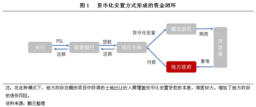 從宏觀來看,棚改貨幣化安置對(duì)于三四線城市房地產(chǎn)市場(chǎng)去庫(kù)存功不可沒。棚戶區(qū)改造短期內(nèi)大量釋放居民購(gòu)房需求,而來自于PSL的貨幣化安置資金則直接提高了房地產(chǎn)到位資金,刺激房地產(chǎn)銷售向好、房?jī)r(jià)地價(jià)全面上行,對(duì)地區(qū)當(dāng)前經(jīng)濟(jì)穩(wěn)定和未來經(jīng)濟(jì)發(fā)展均具有明顯的拉動(dòng)效應(yīng)。有機(jī)構(gòu)曾測(cè)算,2017年我國(guó)棚改計(jì)劃開工600萬套,即使按照50%安置比例中性假設(shè),就可以實(shí)現(xiàn)2.55億平方米的去庫(kù)存規(guī)模。根據(jù)統(tǒng)計(jì)局的數(shù)據(jù),截至2018年5月末,全國(guó)商品房待售面積5.6億平方米,創(chuàng)最近46個(gè)月的新低。去庫(kù)存進(jìn)程告一段落。隨著去庫(kù)存任務(wù)的基本完成,爆發(fā)式增長(zhǎng)的貨幣化安置方式帶來的諸多問題開始逐漸顯現(xiàn)。一方面,貨幣化方式被視作三四線城市住房?jī)r(jià)格非理性上漲的推手之一;另一方面,不規(guī)范的貨幣化安置項(xiàng)目則存在提高政府隱性債務(wù)風(fēng)險(xiǎn)的可能。一些地區(qū)不規(guī)范的貨幣化安置項(xiàng)目,本身土地出讓收入無法覆蓋政策性銀行的貸款本息,以土地出讓后的商業(yè)開發(fā)收入作為專項(xiàng)收入來源,實(shí)現(xiàn)項(xiàng)目的融資平衡。而事實(shí)上貨幣化安置過程中政府并不是商業(yè)開發(fā)主體,導(dǎo)致投資與收益的不匹配,地方政府財(cái)政無形中承擔(dān)了相當(dāng)部分的還款責(zé)任。