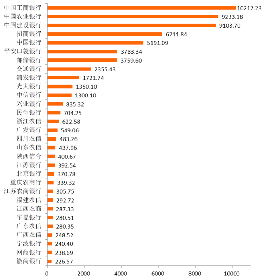 從月活躍用戶數(shù)來(lái)看,根據(jù)第三方權(quán)威數(shù)據(jù)分析機(jī)構(gòu)——易觀Analysys發(fā)布的數(shù)據(jù),截至2021年10月,MAU排名前30名主要以國(guó)有大行、全國(guó)性股份制銀行為主,其中前3甲均為國(guó)有大行,分別為工商銀行1.02億、農(nóng)業(yè)銀行0.92億、建設(shè)銀行0.91億。同時(shí),拼搶“零售之王”的招商銀行與平安銀行,MAU分別排在第4位與第6位,超越了部分股份制銀行。