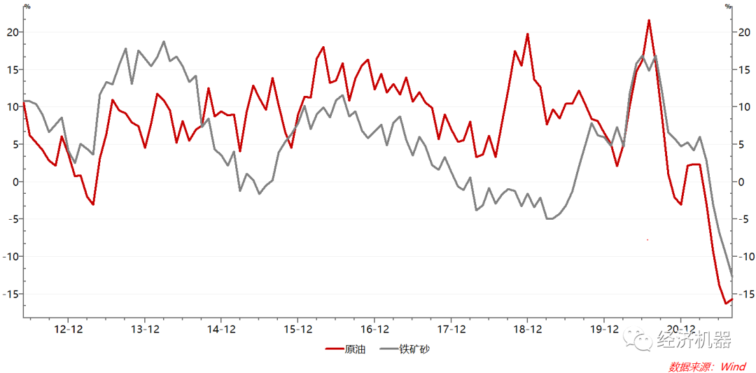 圖8、鐵礦石和原油月進口量:5個月移動平均同比