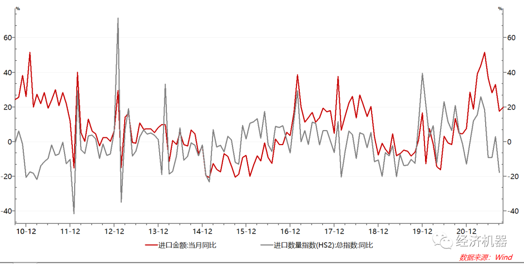 從部分大宗商品進口來看,下降趨勢比較明顯,一方面有內需疲弱的因素,另一方面,或許和疫情下,各國間通關政策差異導致的通關速度放緩有關。