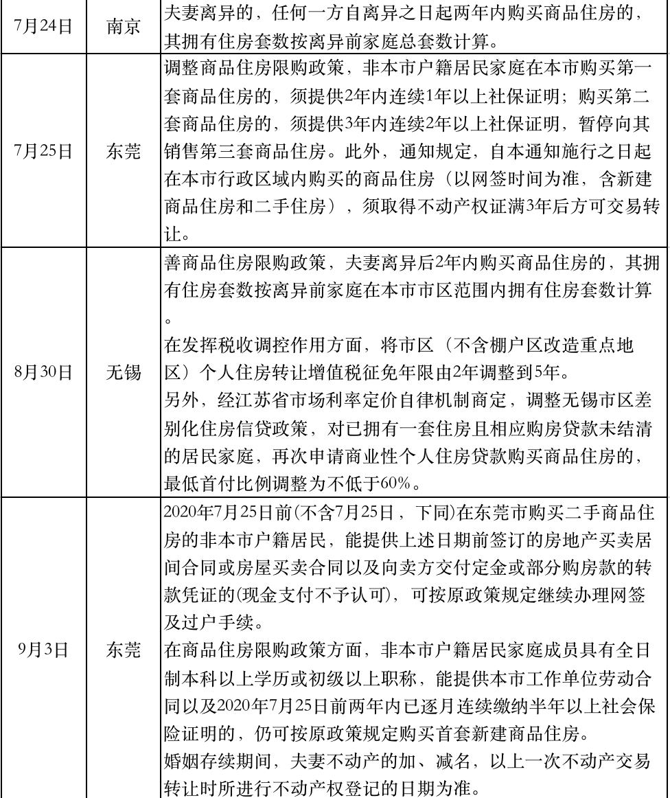 隨后,浙江臺(tái)州、麗水、海鹽等多個(gè)三四線(xiàn)城市發(fā)布樓市調(diào)控政策,掀起了新一輪三四線(xiàn)城市調(diào)控新周期。自7月熱點(diǎn)二線(xiàn)城市紛紛加碼調(diào)控至今,地方因城施策,調(diào)控正逐漸深入至三四線(xiàn)城市,未來(lái)調(diào)控大概率將繼續(xù)維穩(wěn),以更好地落實(shí)穩(wěn)地價(jià)、穩(wěn)房?jī)r(jià)、穩(wěn)預(yù)期的長(zhǎng)期目標(biāo)。