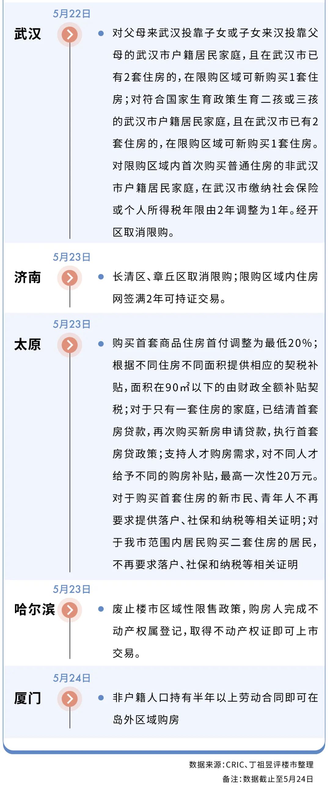 接下來,5月下旬到6月仍是政策窗口期,已出新政的城市不排除會進一步松綁。