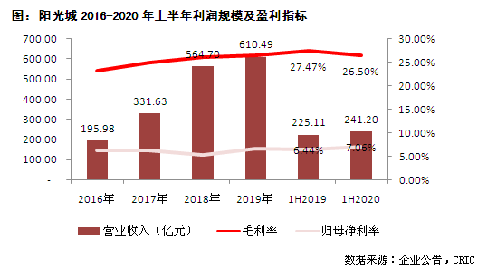 近日,陽光城公布的中期業績顯示,2020年上半年陽光城實現營業收入241.20億元,同比增長7.15%,扣除非經常性損益歸母凈利潤增長17.53%至17.03億元,增速均顯著下降。