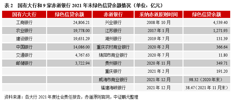 國有大行是國內綠色金融實踐的“排頭兵”,在綠色金融組織管理、綠色貸款、綠色金融信息披露方面表現突出。此外,還通過自身發行綠色債券、承銷綠色債券、投資綠色債券等其他方式參與綠色金融。除了國有大行外,許多銀行在綠色金融方面的表現也可圈可點。一些銀行宣布采納赤道原則(赤道原則旨在判斷、評估和管理項目融資中環境和社會風險,倡導金融機構對項目融資中的環境和社會問題盡到審慎性核查義務)成為赤道銀行,截止2022年5月末,國內有9家赤道銀行。一些銀行創新綠色金融實踐,例如,多個銀行創建綠色特色支行,甚至已經有部分銀行(如浦發銀行張江科技支行與閔行支行等)實現了自身運營的碳中和,被認證為“碳中和”銀行