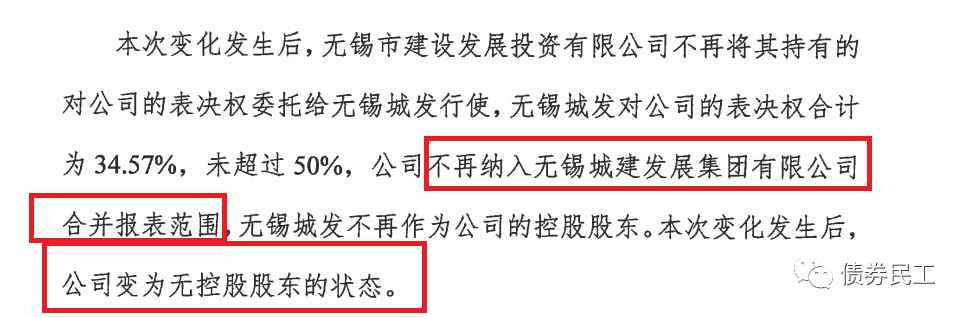 根據(jù)無(wú)錫市太湖新城發(fā)展集團(tuán)有限公司(以下簡(jiǎn)稱(chēng)“太湖新城”)于2022年2月8日披露的公告,公司的控股股東發(fā)生了變化,變更為無(wú)控股股東狀態(tài)。當(dāng)然,太湖新城的實(shí)際控制人沒(méi)有發(fā)生變化,依然是無(wú)錫市國(guó)資委。這種無(wú)控股股股東的情況,在城投公司中還是比較少見(jiàn)的。一般來(lái)說(shuō),城投公司的控股股東會(huì)直接是政府及其下屬部門(mén)、當(dāng)?shù)氐膰?guó)有企業(yè)、市級(jí)國(guó)有企業(yè)或者省級(jí)國(guó)有企業(yè)。