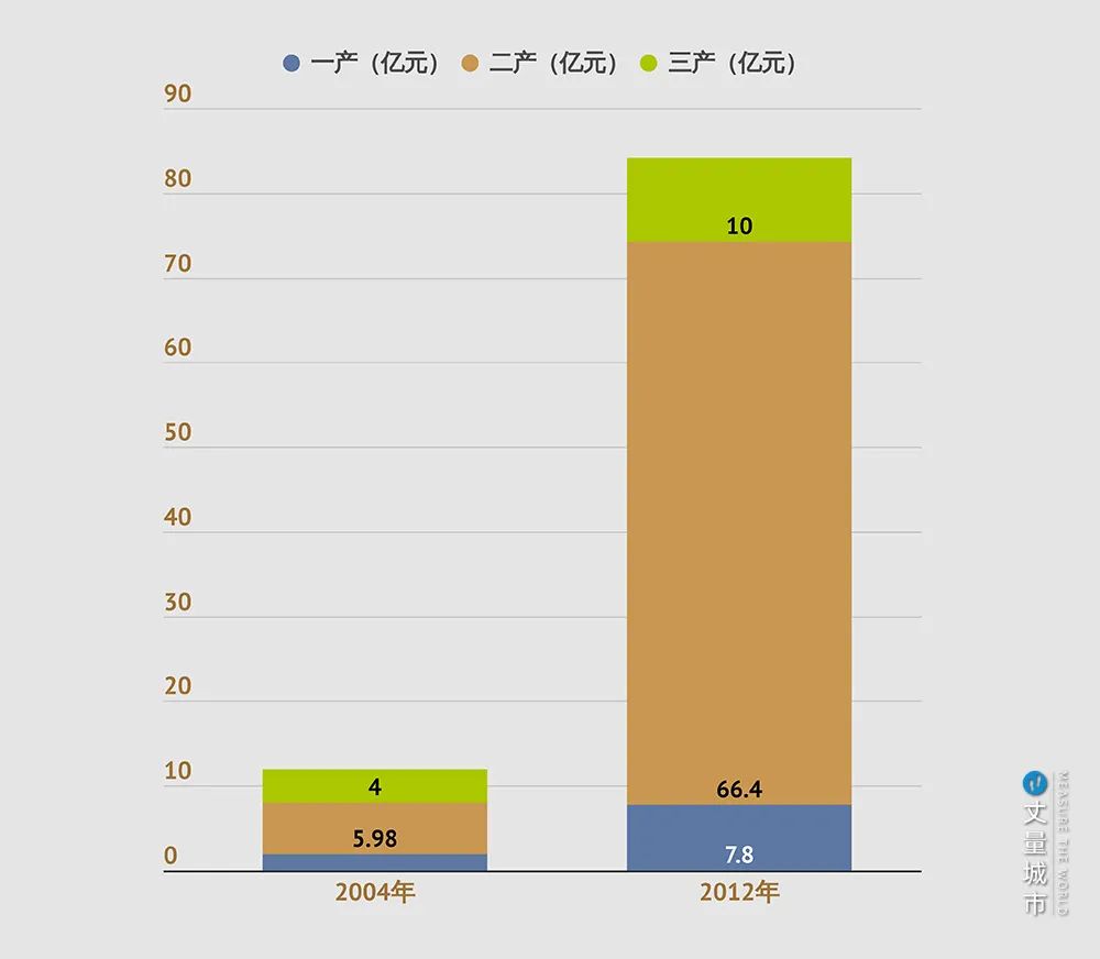 ▼ 從宋莊2004年GDP與2012年GDP對比中看出,宋莊的三產增長緩慢