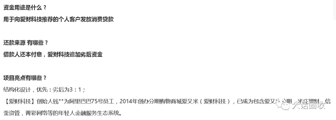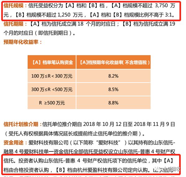 信托設(shè)立了一個(gè)3:1的比例,由愛財(cái)集團(tuán)認(rèn)購四分之一份額;并晚于一般投資者1個(gè)月到期;但算算日子,項(xiàng)目要到2020年6月才到期,而愛財(cái)集團(tuán)已經(jīng)倒了。