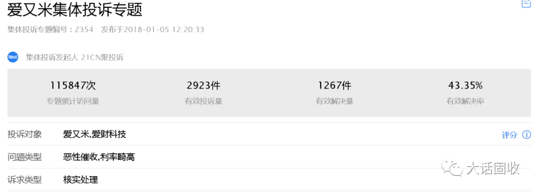 做企業(yè)的盡調(diào),還能看看財(cái)務(wù)報(bào)表,研究下資產(chǎn)負(fù)債;但做針對(duì)個(gè)人的貸款,還只能停留在這種粗淺的“畫像階段”,往前走一步就是非法窺探隱私了……這也是為什么消費(fèi)金融公司屢屢被爆侵犯隱私。底層債務(wù)人越模糊,違約率就越高,但催收又往往觸碰法律風(fēng)險(xiǎn)。搜索“愛又米”,逾期后投訴催收的比比皆是。