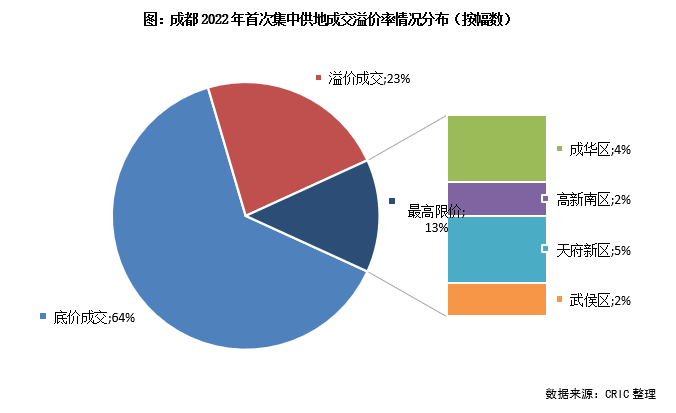在延續了土拍門檻降低的政策環境下,成都本次土拍表現較2021年第二、三輪有所回溫,但熱度漲幅并不明顯。