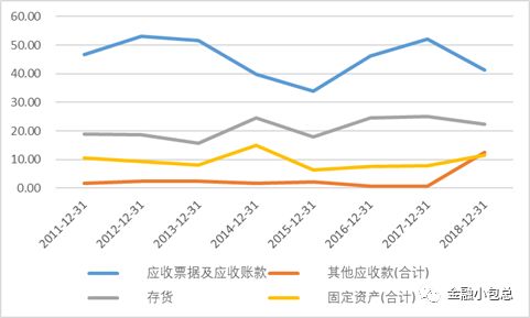 公司資產結構中流動性資產占絕大部分,2018年公司流動資產占總資產比高達86.03%,而公司流動性資產中主要由應收票據和應收賬款、其他應收款構成,且這三項的比例逐年上升,這反映出公司在產業鏈中的弱勢地位。