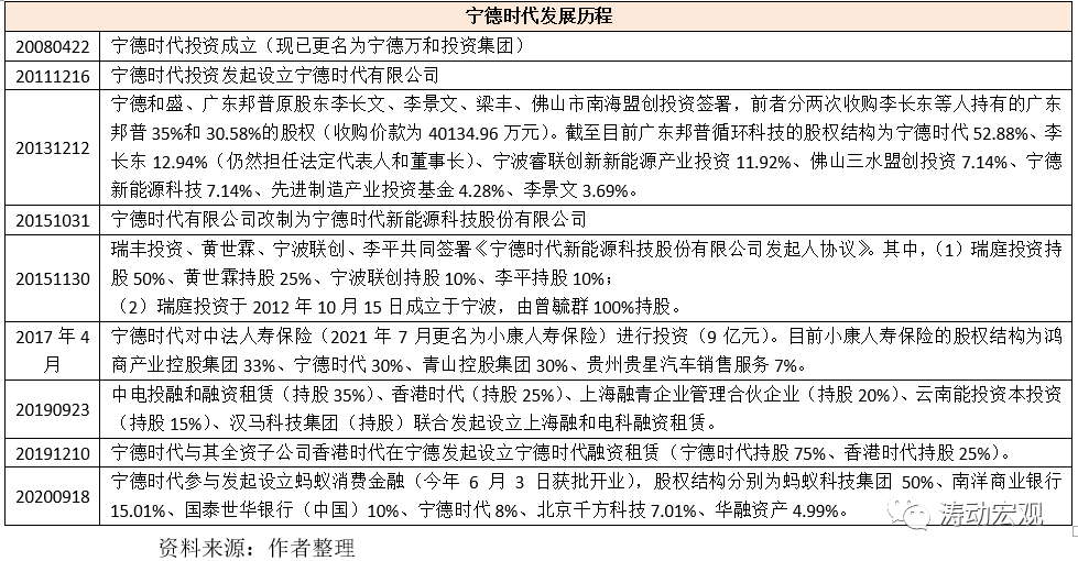 2017年4月寧德時代對當時的中法人壽保險進行投資(2020年12月銀保監會核準),目前持有小康人壽保險30%的股權。
