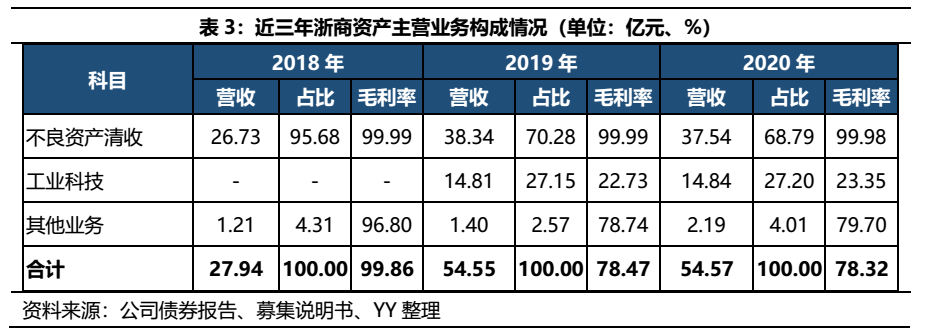 憑借得天獨(dú)厚的外部經(jīng)營環(huán)境(浙江省發(fā)達(dá)的經(jīng)濟(jì)金融基礎(chǔ))及準(zhǔn)確的自我定位(專精金融不良處置),不良資產(chǎn)經(jīng)營始終是浙商資產(chǎn)最主要的收入來源。