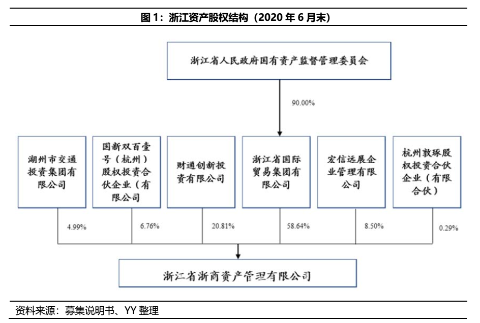 浙商資產(chǎn)成立于2013年8月,是浙江省第一家具有批量轉(zhuǎn)讓金融不良資產(chǎn)資質(zhì)的省級資產(chǎn)管理公司。截至2020年6月末,公司控股股東為浙江省國際貿(mào)易集團(tuán)有限公司,實(shí)控人為浙江省國資委。