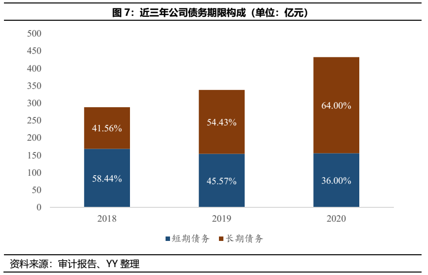 縱向來看,受公司不良資產(chǎn)業(yè)務(wù)規(guī)模擴(kuò)張較快影響,公司債務(wù)增速也較快,至2020年末有息債務(wù)規(guī)模達(dá)432.46億元。不過新增部分主要為長期債務(wù),從期限結(jié)構(gòu)來看是相對好轉(zhuǎn)的趨勢,短期債務(wù)占比不斷下降,2020年末為36%。