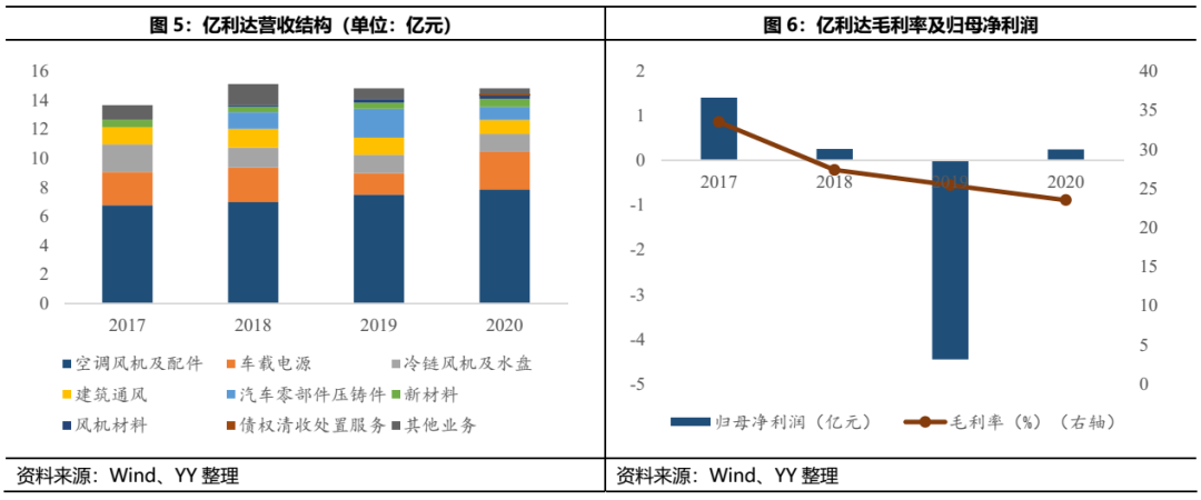 2018年末收購億利達(dá)后,公司拓展了工業(yè)科技業(yè)務(wù)板塊。億利達(dá)主營風(fēng)機(jī)、新能源車載電池、輕量化汽車部件的研發(fā)、生產(chǎn)及銷售。