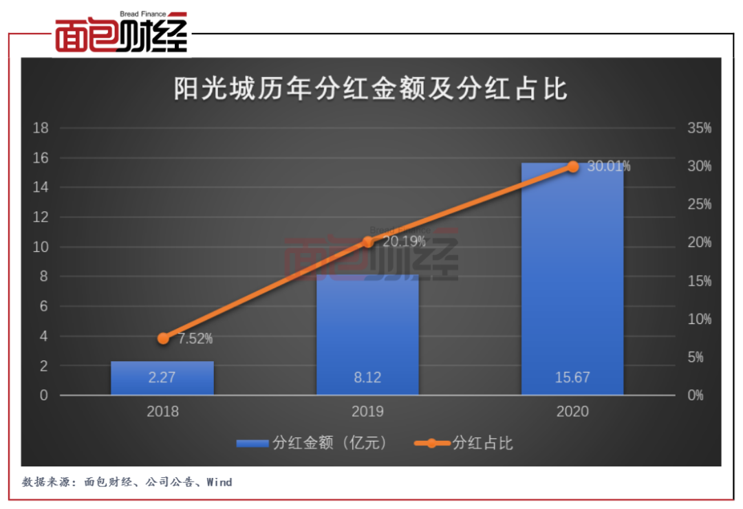 基于較為穩(wěn)健的財(cái)務(wù)表現(xiàn),陽(yáng)光城近年來(lái)持續(xù)加大分紅力度。財(cái)報(bào)顯示,公司2020年擬向全體股東每10股派發(fā)現(xiàn)金股利3.81元(含稅),合計(jì)分紅金額達(dá)到約15.67億元,占同期歸母凈利潤(rùn)的30.01%,相比過(guò)去幾年明顯提升。