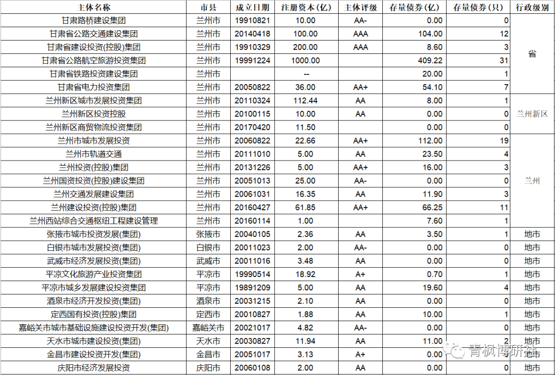 (一)城投:共有27家城投平臺,蘭州地區(含蘭州新區)有10家